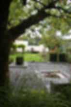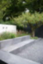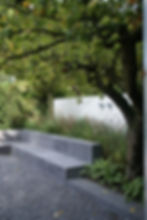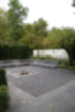 De landschappelijke invulling van deze tuin rondom een moderne villa aan de rand van een bos is er een hoek in de tuin om een groot vuur te maken gemaakt. Het huis is wit en modern en zo wordt door de witte muur dit plekje erbij betrokken. Het is mogelijk om hufterproef en royaal op de betonnen brede bank te zitten en een flink vuur te maken.